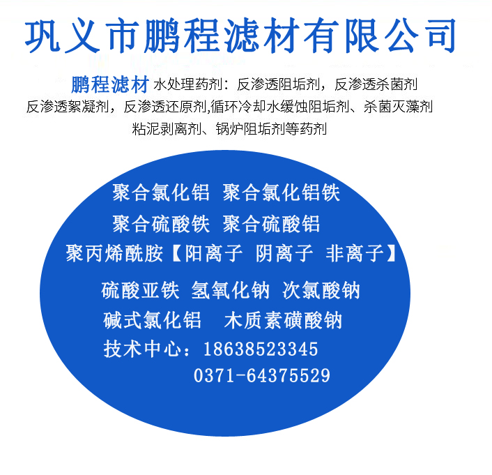 聚合氯化鋁 聚丙烯酰胺 聚合氯化鋁鐵 聚合硫酸鐵 硫酸亞鐵 聚合硫酸鋁 次氯酸鈉 氫氧化鈉 木質(zhì)素磺酸鈉等水處理藥劑 ——工業(yè)級(jí) 食品級(jí) 飲用水劑 處理級(jí)——鵬程濾材產(chǎn)品 型號(hào)齊全 歡迎咨詢(xún)